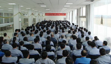 會(huì)上,總經(jīng)理孫龍平首先代表公司將節(jié)日的祝福帶給大家,然后通報(bào)了2008年工作的完成情況,并對(duì)完成2009年的任務(wù)目標(biāo)提出了要求。副總經(jīng)理劉擁民將2008年申報(bào)的各項(xiàng)貢獻(xiàn)獎(jiǎng)勵(lì)及評(píng)比情況進(jìn)行了通報(bào)。