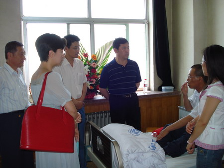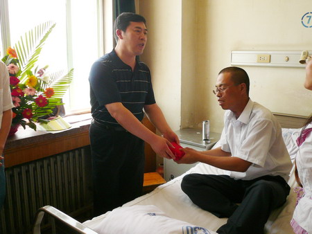 6月24日,公司總經理孫龍平,黨總支書記張玉琴及人力資源部部長姜作棟等一行,專程到德州人民醫院,將寄托著廣大員工深情厚誼的28150元捐款送到了孫富強的病榻前。鼓勵他要積極樂觀,堅定戰勝病魔的信心,期盼著他早日康復,重返工作崗位。