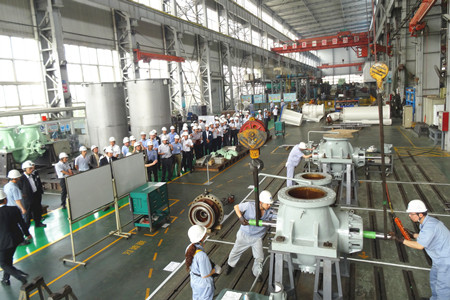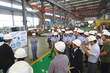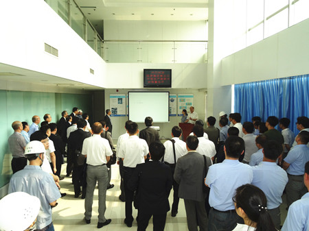 這次生產革新大會的目的是加速推進荏原集團內部各工廠的生產革新活動的開展,目標是生產周期減半、庫存減半、最大限度地提高生產效率,降低成本,增強企業競爭力。通過生產革新活動,達到從現場改善提升到管理系統改善、人的改善的目標,使“產品制作”流程優化。在這次大會上,公司總經理王正軍向與會代表介紹了EMZ的經營發展狀況,并帶領與會人員參觀工廠,詳細介紹了生產革新的進展情況。